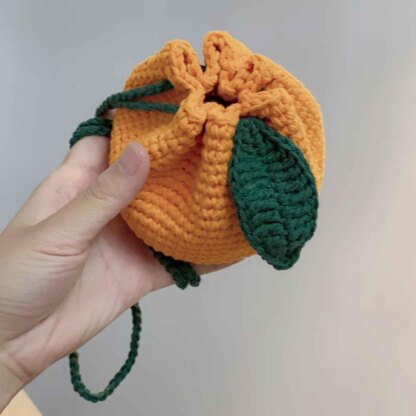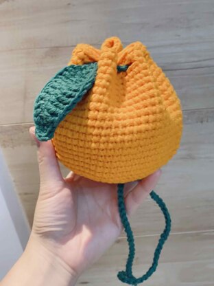 This free crochet pattern will guide you through creating an adorable orange-shaped bag , complete with a green leaf.