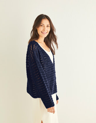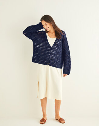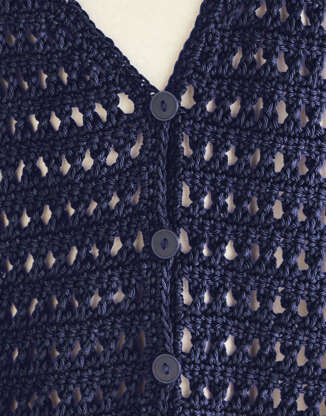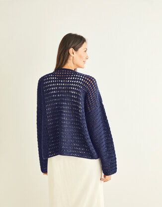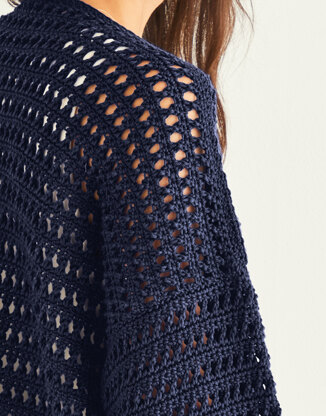 Worked in a crossed double treble pattern with dropped shoulders and wide cuffs to keep your arms covered but cool in the summer sun (here’s hoping).