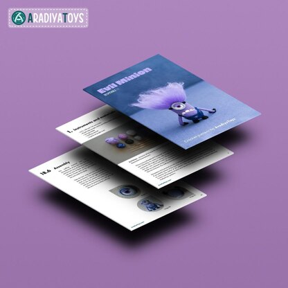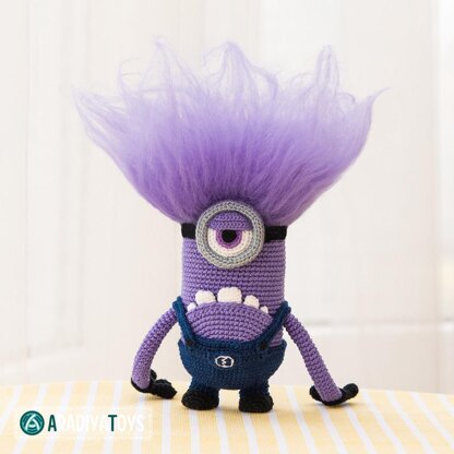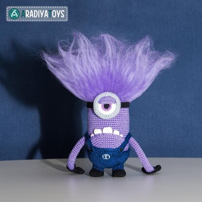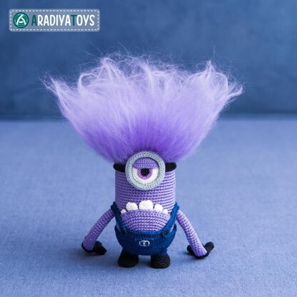 needed to create a 6.7-inches tall toy: – hooks: 0.75, 1.00 and 1.25 mm (but you can use any hooks you want, just find a proper yarn for it) – yarn: “Iris” by Kirov Yarn Mills (150 meters / 25 grams), “Camomile” by Kirov Yarn Mills (320 meters / 75 grams), 100% cotton – sewing needle – stuffing material – a piece of purple wool You are allowed to sell Evil Minion, crocheted with this pattern, in small amounts, provided that you credit the pattern’s author and add a link to the pattern’s web page.