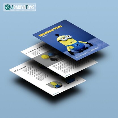 needed to create a 5.3-inches tall toy: – hook: 1.25 mm (but you can use any hook you want, just find a proper yarn for it) – yarn: “Iris” by Kirov Yarn Mills (150 meters / 25 grams), “Camomile” by Kirov Yarn Mills (320 meters / 75 grams), 100% cotton – sewing needle – stuffing material You are allowed to sell Minion Tim, crocheted with this pattern, in small amounts, provided that you credit the pattern’s author and add a link to the pattern’s web page.