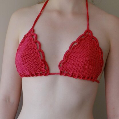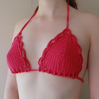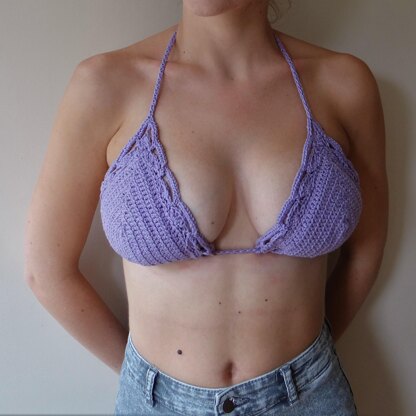 used: 1 Skein of Wendy Supreme Cotton DK (DK,100% Cotton, 201m per 100g) or substitute cotton yarn 3mm hook Yarn needle Stitch Markers (optional) Knitting-in elastic (optional) Cup Sizes: Small – base of the cup should measure 6.5” (16.5cm) Medium – base of the cup should measure 7.5” (19cm) Large – Base of the cup should measure 8.5” (21.6cm) Back Tie: Can be made as long as required.