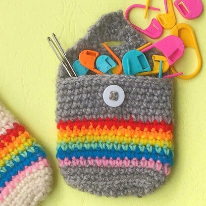 The pixie pocket pouch is the perfect way to store a wide variety of tiny objects from stitch markers and darning needles to pieces of jewellery and small valuables, and it fits so conveniently in your pockets!