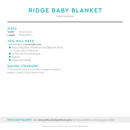 Download the PDF pattern for Ridge Baby Blanket – Free Crochet Pattern For Babies in Paintbox Yarns Baby DK Prints by Paintbox Yarns & start crocheting today!