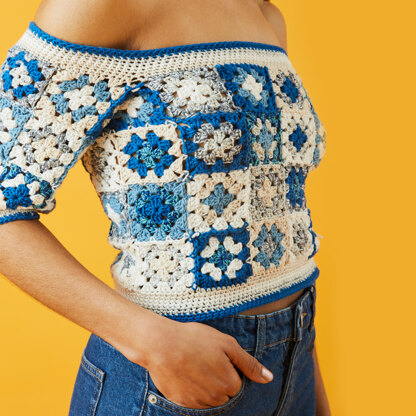 Download the PDF pattern for Shoulders in the Sun Top – Free Top Crochet Pattern for Women in Paintbox Yarns Cotton DK & Metallic DK – Downloadable PDF & start crocheting today!