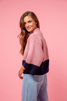 So simple to crochet, with easy stitches and a boxy shape and cosy high neckline, you can choose two colours that complement your wardrobe, or make it all in one colour!